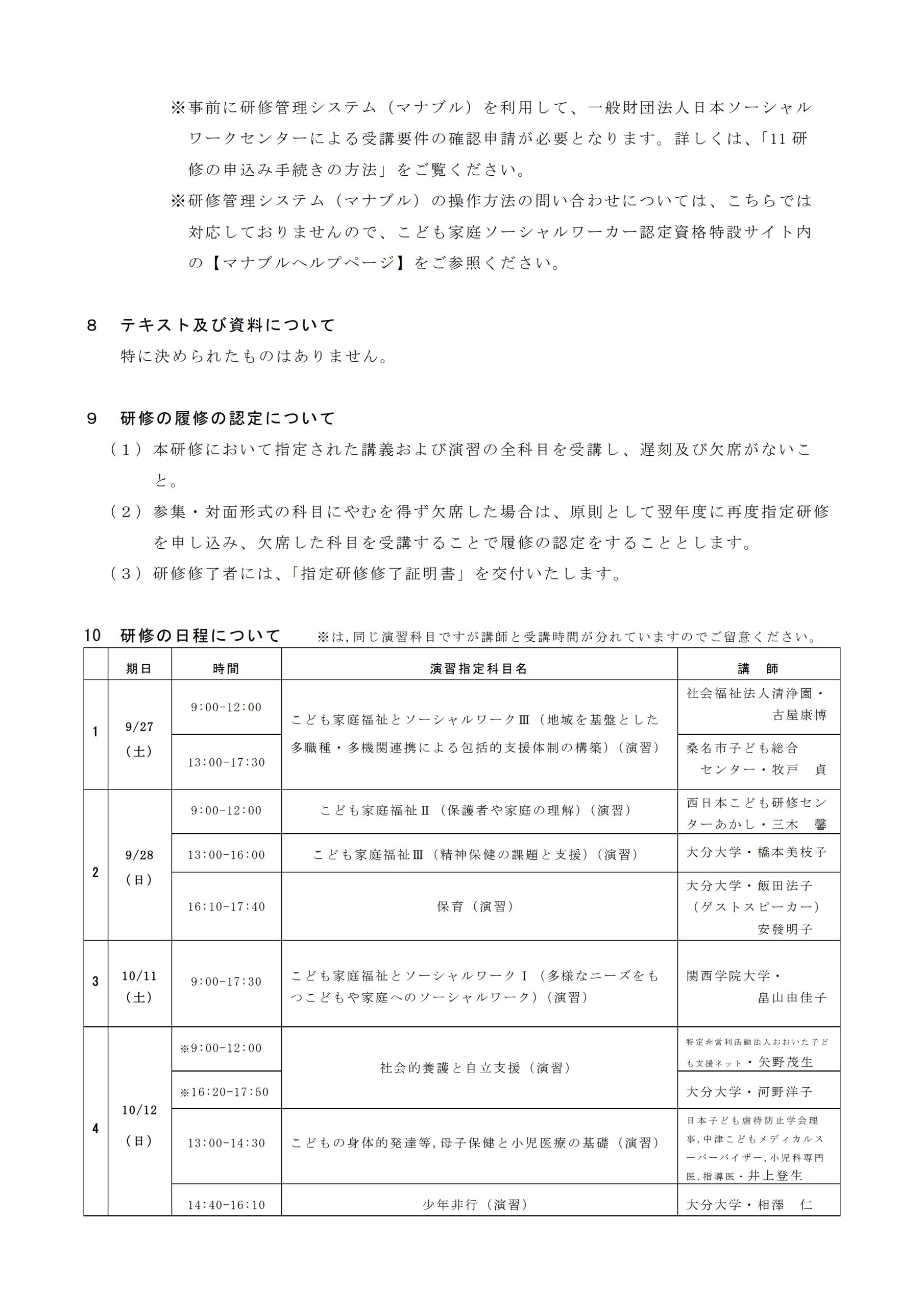 受講要件や申込の流れにつきましては、こども家庭ソーシャルワーカー認定資格特設サイト内(https://kodomo.jswc.or.jp/examinee/training)の【研修の受講要件】「★こども家庭ソーシャルワーカー資格ガイド(資格概要~受講申込)」や、【研修受講の流れ】研修管理システム「マナブルヘルプページ」をご確認ください。