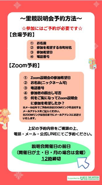 会場、ZOOMどちらの説明会にも参加には予約が必要です。